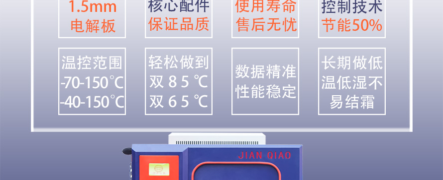 產(chǎn)品型號(hào):JQTH-225L 品牌:劍 喬 用途:可程式恒溫恒濕試驗(yàn)箱應(yīng)用于,試驗(yàn)各種產(chǎn)品及材料耐熱,耐寒,耐高溫,耐濕性能。適合電子,光伏組件,電器,食品,車輛,金屬,化學(xué),建材等工廠,科研單位,院校之用。